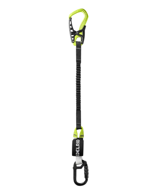 Light, compact I-lanyard with an elasticated arm and ONE TOUCH II palm carabiner for easy handling when self-belaying or for protection on work platforms, during rigging work as well as for connection to a lifeline. The integrated shock absorber is designed for a maximum load of 140 kg. The individual carabiner and the SHOCKSTOP-LITE-I 140 ONE TOUCH as a system have been edge tested.