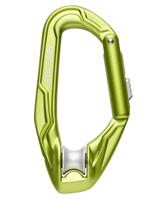 Carabiner with integrated pulley in the spine. The pulley reduces rope friction to a minimum and maintains its function even under load. The optimized design of the AXIOM ensures that the rope is always ideally guided so that it can always run on the pulley. Available with a classic gate or the automatic and very compact Slider locking gate. The gate opens on the pulley side, which makes installing the rope easier.