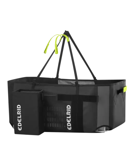 Practical and secure transport aid for route setters that perfectly holds the euro containers commonly used in most climbing gyms for storing holds or two type 2 mail containers. The all-round strap system withstands loads of up to 150 kg and can be suspended at two angles to allow the attachment of two SETTER BAGS. Internal dimensions: 630 x 420 x 300 mm.