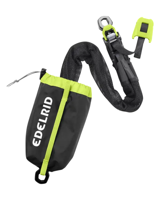 The KAA is a prefabricated haul system for tensioning systems or lifting people during rescues. In addition, as the KAA is certified to EN 354, it can be used for workplace stabilization, as a restraint system (open/closed), and for controlled lowering. Its strap-based construction makes it the most compact and lightweight system on the market. Depending on the positioning, it offers a 4:1 or 5:1 lifting ratio with an efficiency of 91 %. The KAA is packaged compactly but ready for immediate use, so that no valuable time is lost when it is required. A swivel is provided at each end to prevent the system from twisting. The hand lever on the draw cord makes it easier to pull and can also be used as a lowering lever. The KAA is available in three lengths: 0.8, 1.5 und 4 m.