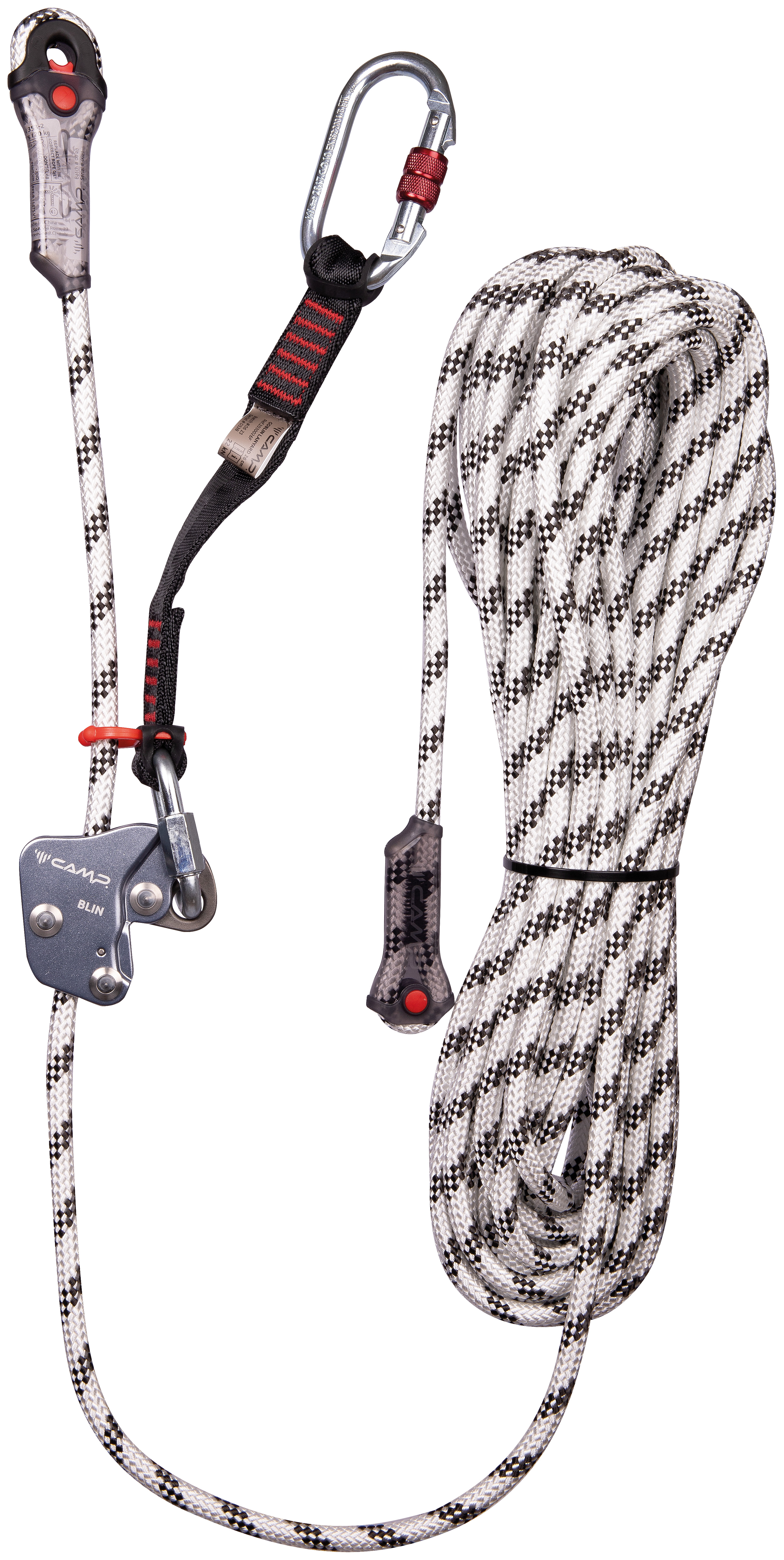Pre-equipped with robust Iridium 10.5 mm semi-static rope with stitched loops on the ends. Available in a variety of lengths. The protective system for rope loops and stitching is incredibly compact and robust; includes anti-rotation rubber for the carabiner. Replacement rope kits are available.