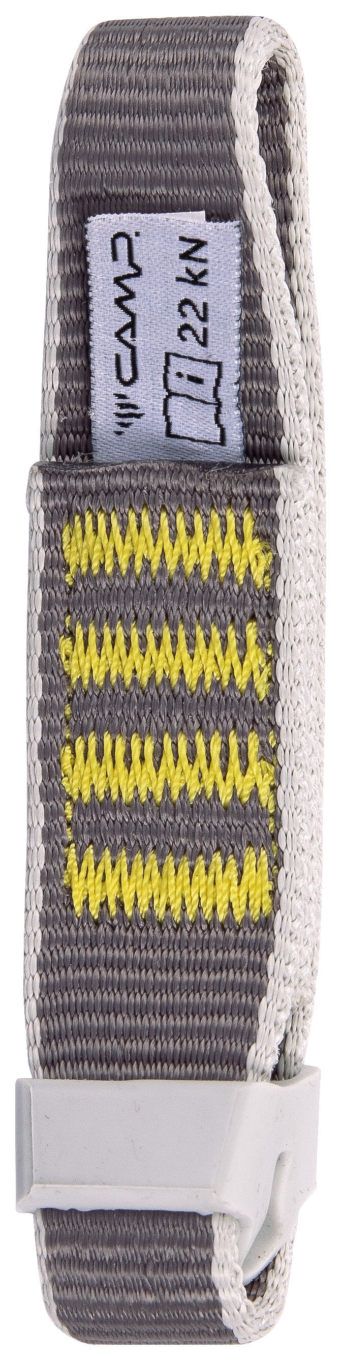 25 mm polyester dogbones with a variable width design that is thick and stiff in the middle and tapered at the ends for a profiled connection with the carabiners