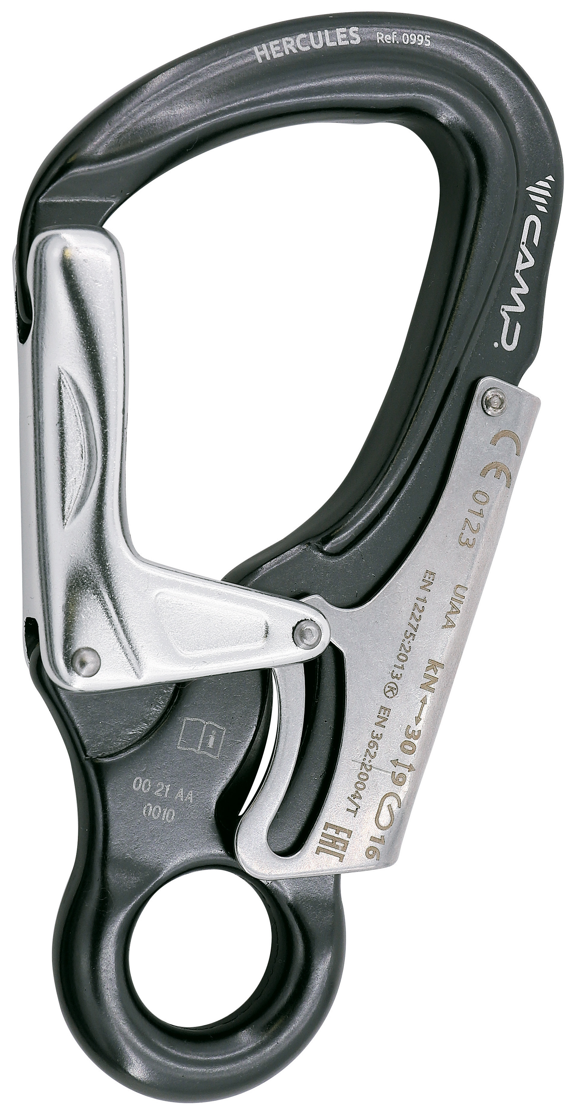 Automatic lock opens by squeezing the carabiner and pulling the gate.