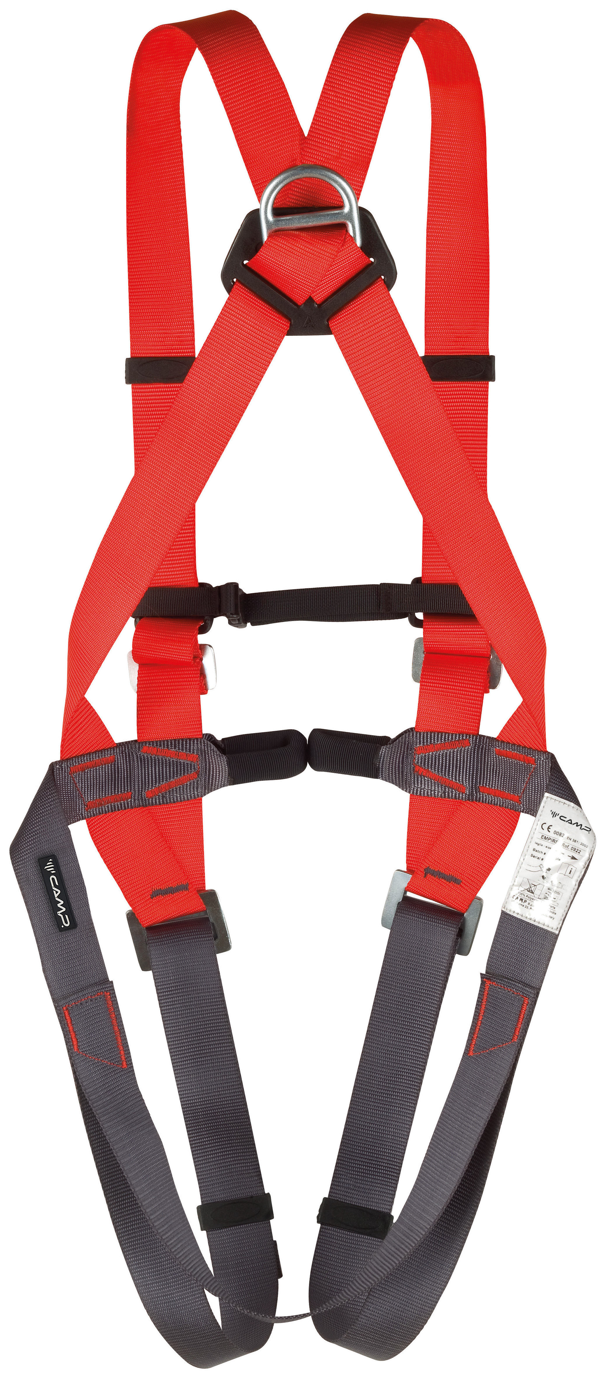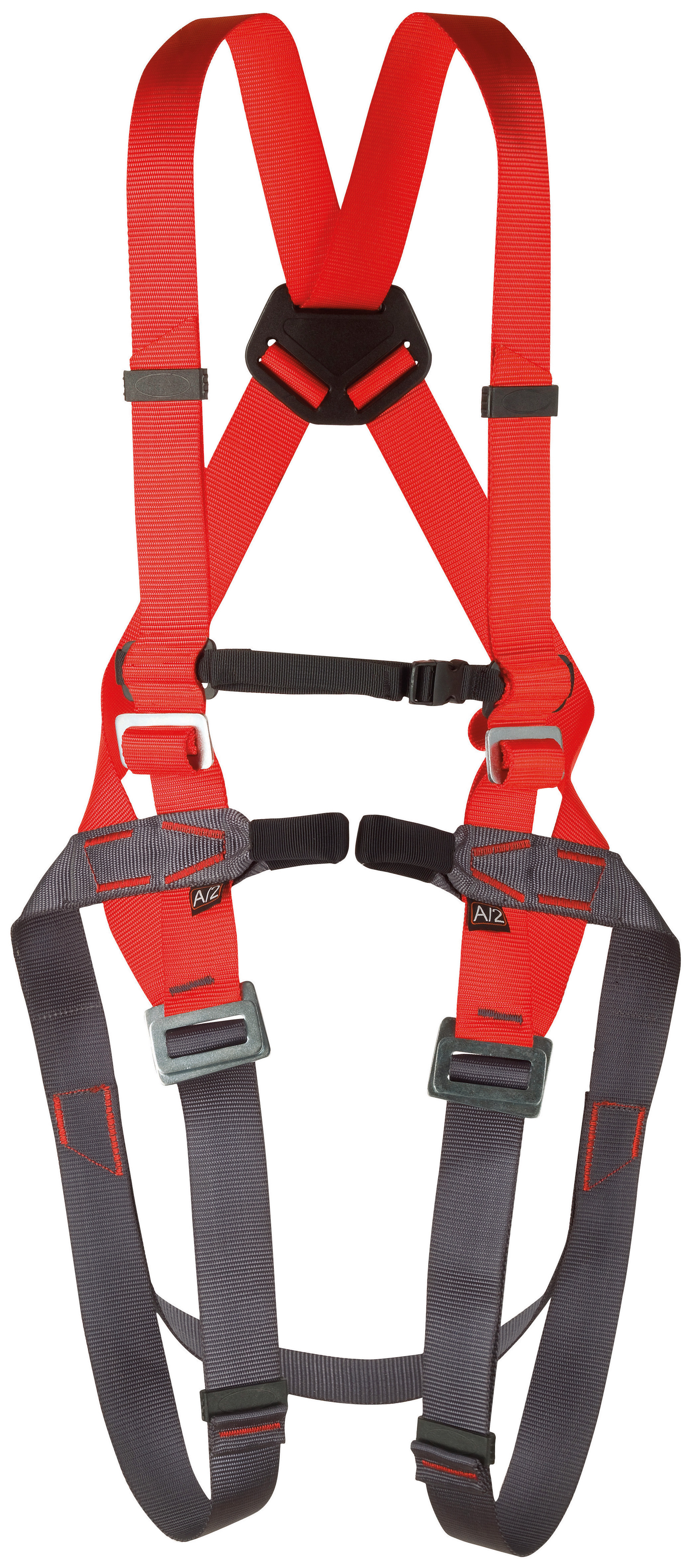 A full body harness with 2 attachment points for fall arrest: 1 sternal double textile loop, 1 dorsal steel ring.