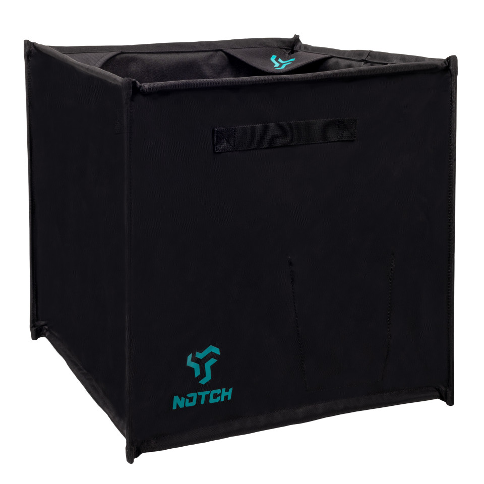 Just as effective at dispersing line during the throw as it is at receiving line being retrieved, the Notch Cube Fold & Hold Deluxe folding throwline cube can be used on the ground or in the tree with equal effectiveness. Storage features include one large exterior and two small interior pockets for holding throw weights plus an interior Velcro strap and D-ring for quick line-end recovery. The material on the bottom of the cube stretches preventing damage to the cube when packed tightly. Made with approval from Heinrich Haeussler.