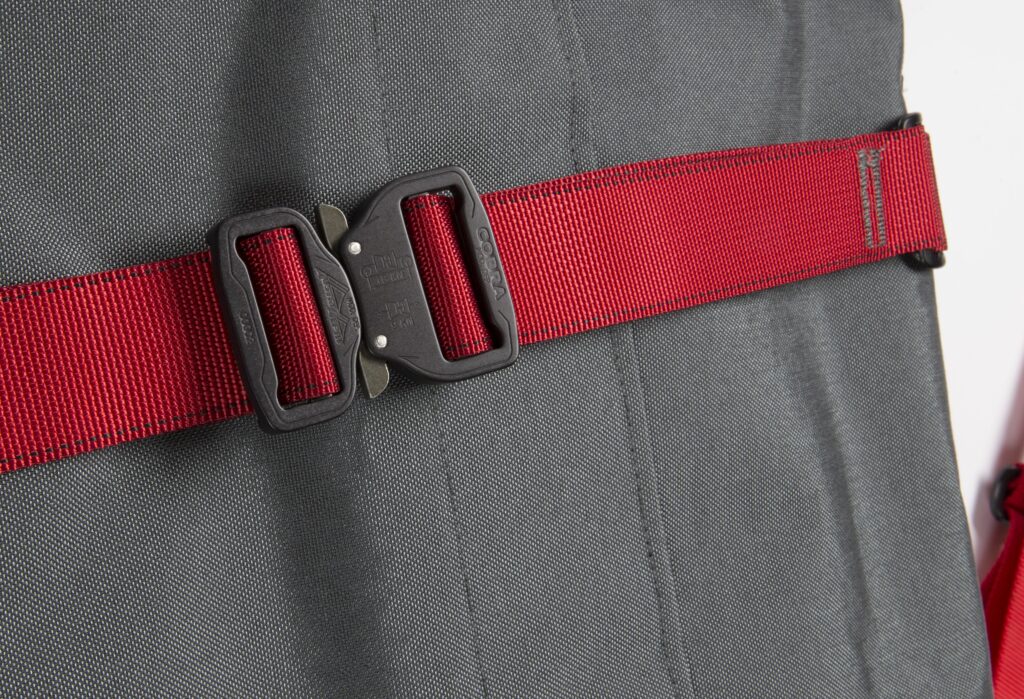 Integrated machined aluminum Cobra Buckles® are secure, easy to adjust, and expedite loading/unloading process