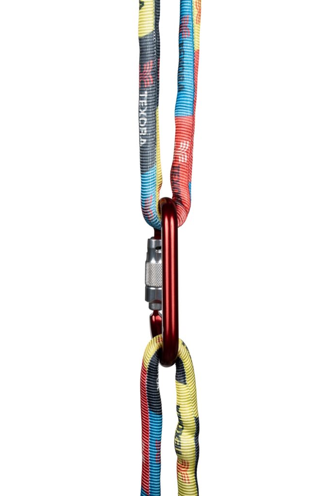Texora recommends using an approved carabiner to join two slings together. Follow best practices for properly loading carabiners.