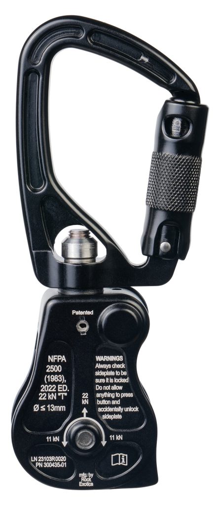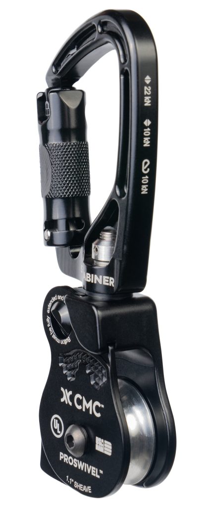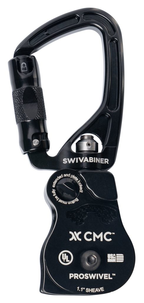 The SwivaBiner combines a swivel, pulley, and carabiner into a single compact device with a double-detent sideplate that opens while the pulley is still attached to the anchor. Teaming up with Rock Exotica, CMC offers a single and double sheave SwivaBiner each certified to NFPA standards. They are an excellent option for mechanical advantage systems for hauling and ascending, and they work well in combination with high anchors, tripods, and redirects. The SwivaBiner is patented, time-tested, made in the USA, and brought to you by two companies committed to quality and service. For more swivel pulley options, check out our full ProSwivel Pulley line.