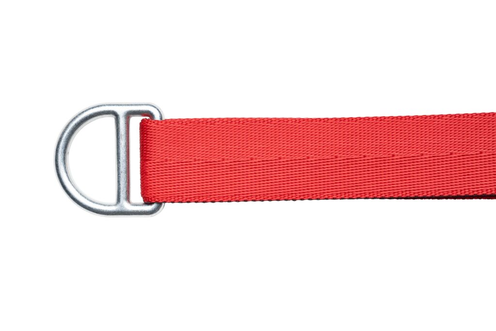 The SL Variable Anchor Strap is constructed from a single layer of latex-coated polyester webbing that is easy to pack, carry, and deploy. Compared to nylon, the polyester webbing is more resistant to UV and water, and has less elongation. The webbing also stands out due to its bright red color, selected for high visibility, and its contrasting gray stitching, which aids inspection. The SL Variable Anchor Strap is classified to NFPA General Use for Basket (U), Choker (Girth Hitch) and End-to-End, providing a high breaking strength to withstand heavy loads on the system. It’s steel adjuster buckle meets the strength specifications stated below without needing to tie a back-up overhand knot.