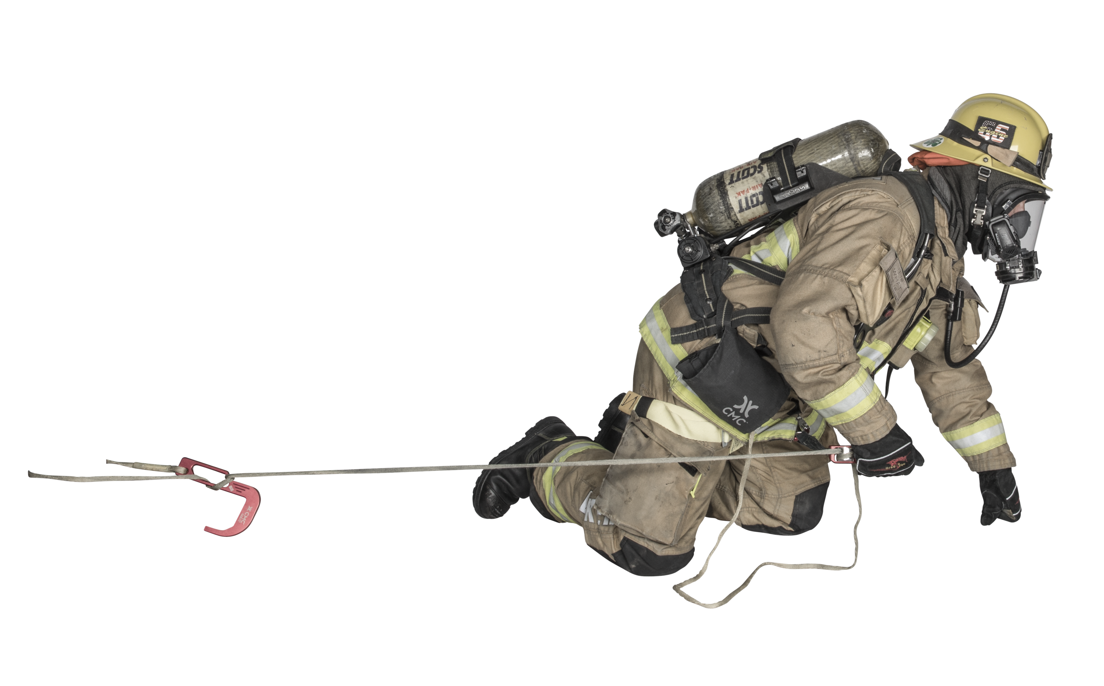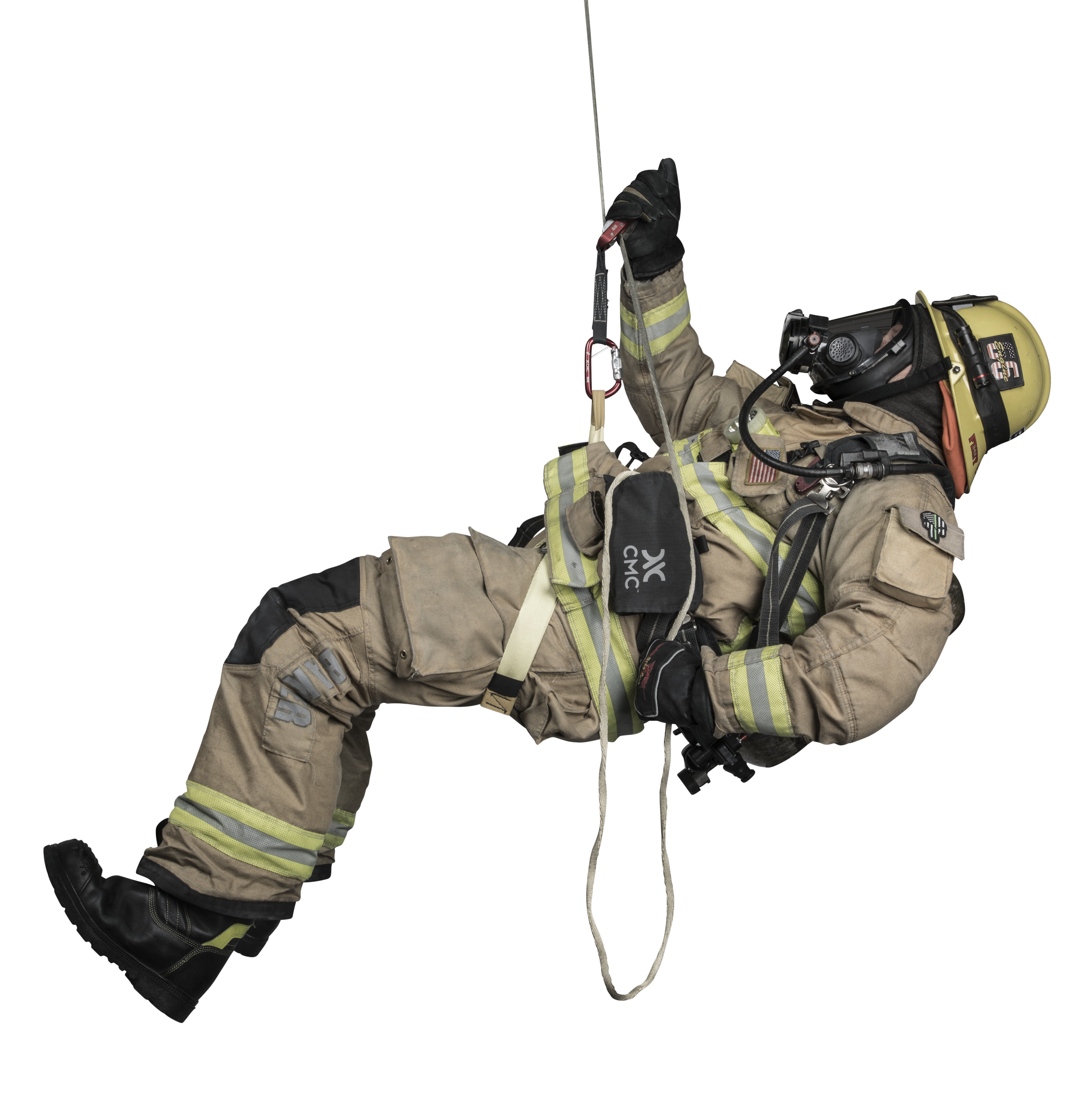 The LEVR Escape System also includes 50 feet of proprietary CMC Fire Escape Web™, made of 100% Technora® fiber for high strength, durability, heat-resistance, and superior packability. A low-profile Fire Escape Bag allows right or left hand deployment and attaches securely to a belt or harness. The personal tether and aluminum auto-locking carabiner keep the system connected to an attachment point and ready for immediate deployment. Extremely compact, the LEVR Escape System integrates with turnout gear and leaves the user unencumbered.