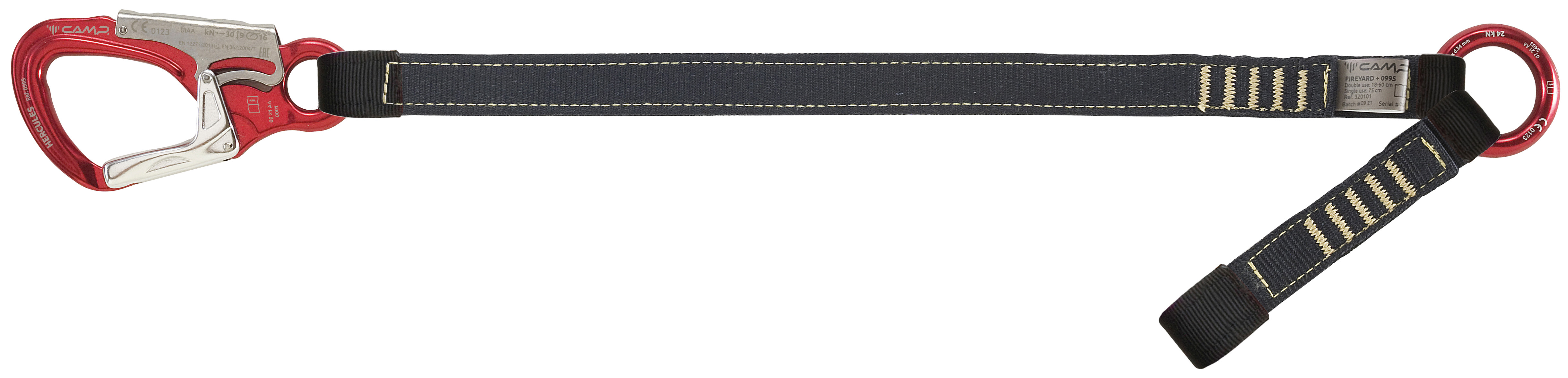 Double leg positioning lanyard made of 25 mm para-aramid webbing for high resistance to heat, fire and cutting (working temperature up to 350°C, melting temperature > 450°C).