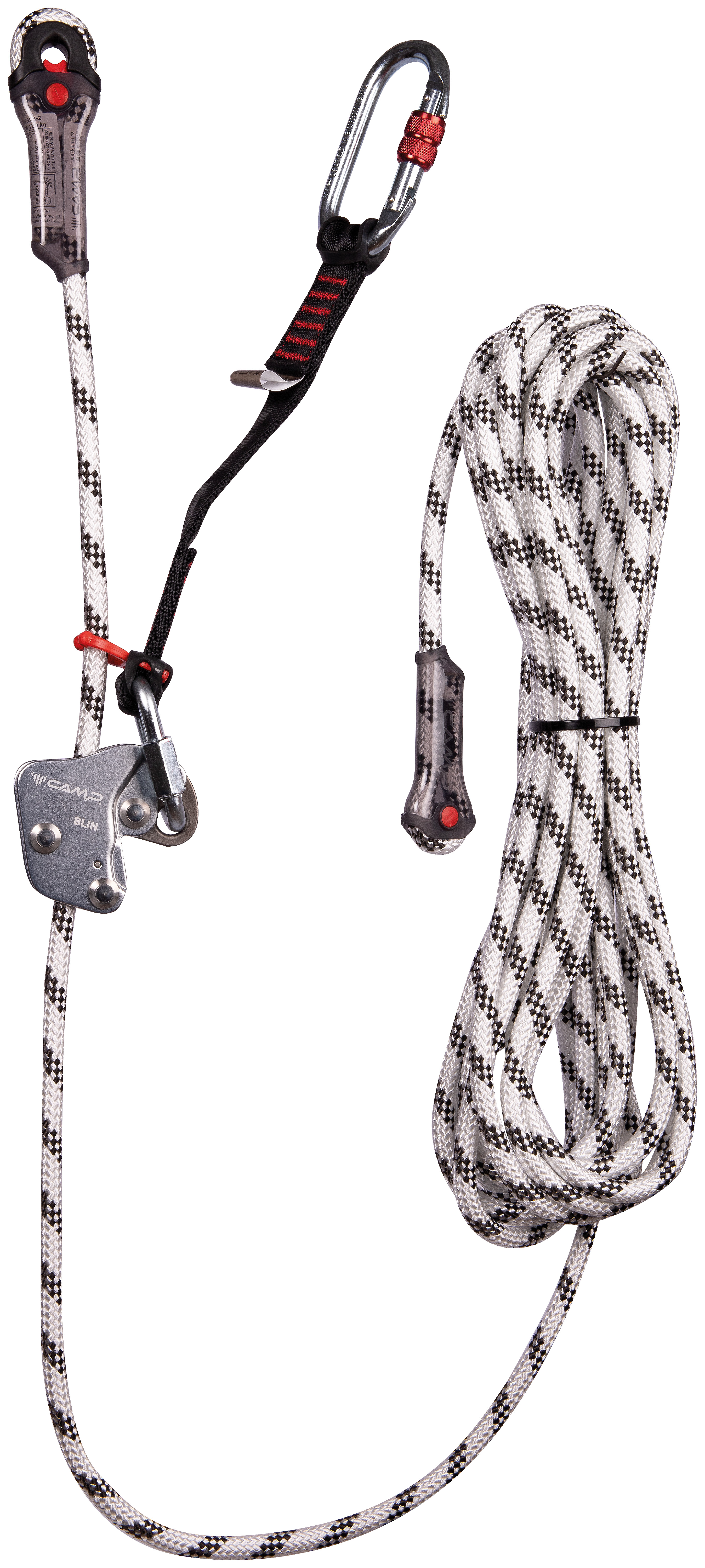 Pre-equipped with robust Iridium 10.5 mm semi-static rope with stitched loops on the ends. Available in a variety of lengths. The protective system for rope loops and stitching is incredibly compact and robust; includes anti-rotation rubber for the carabiner. Replacement rope kits are available.