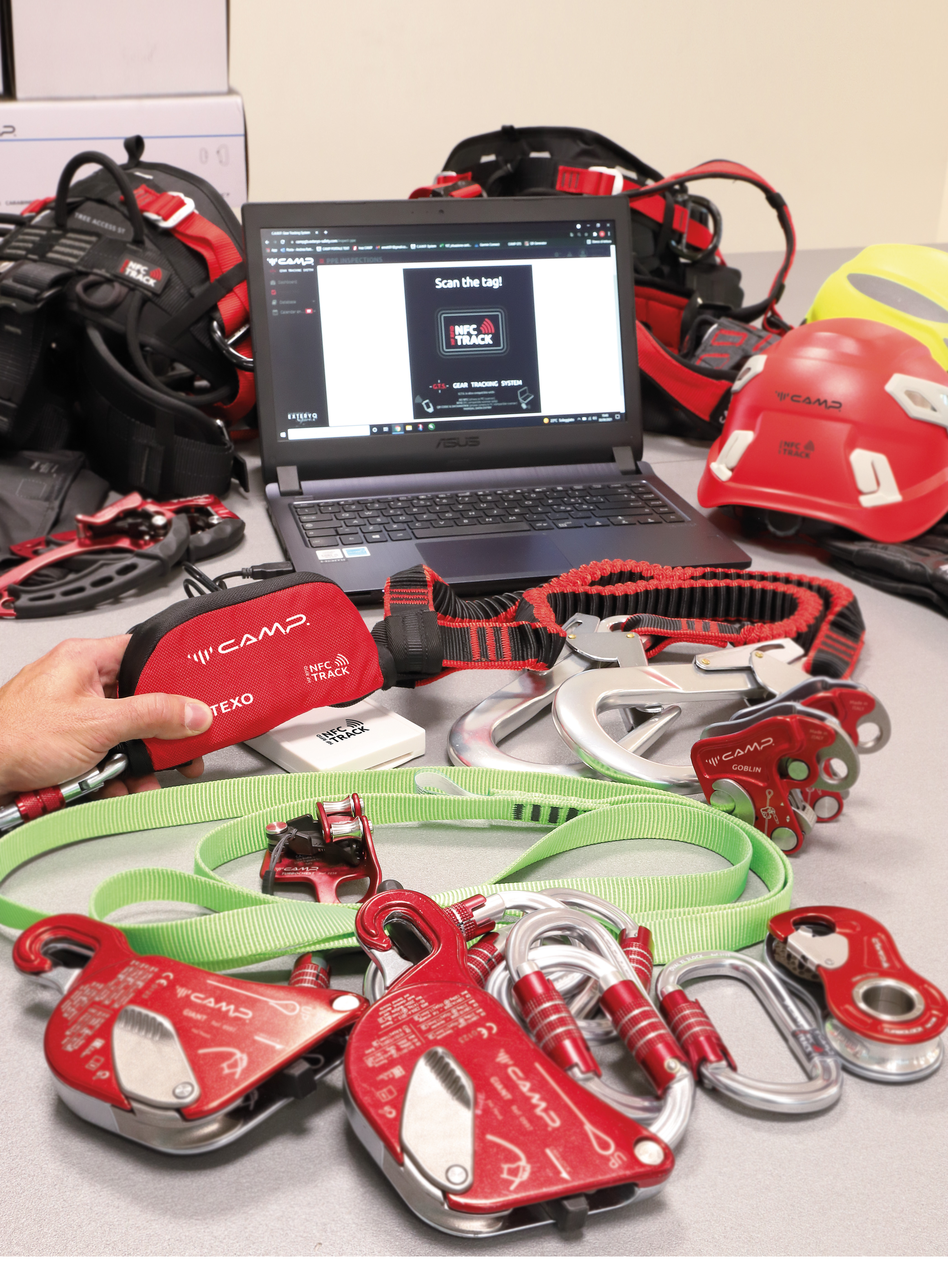 Reads the NFC TRACK chips integrated into many C.A.M.P. products or applied by the user for the management of PPE using the C.A.M.P. G.T.S. - Gear Tracking System software/app or with other systems that support NFC technology. Recommended for professional users as an alternative to using a smart phone for scanning.