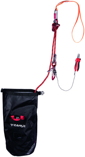 The rescuer attaches the victim to the rope and cuts the victim’s lanyard before rappelling to the ground using the Druid descender. It is also possible to lift the person up just enough to detach the lanyard and rappel to the ground by means of a single tackle system that can be created by passing the rope through the small carabiner installed for this purpose. Also suitable for rescue on roofs.