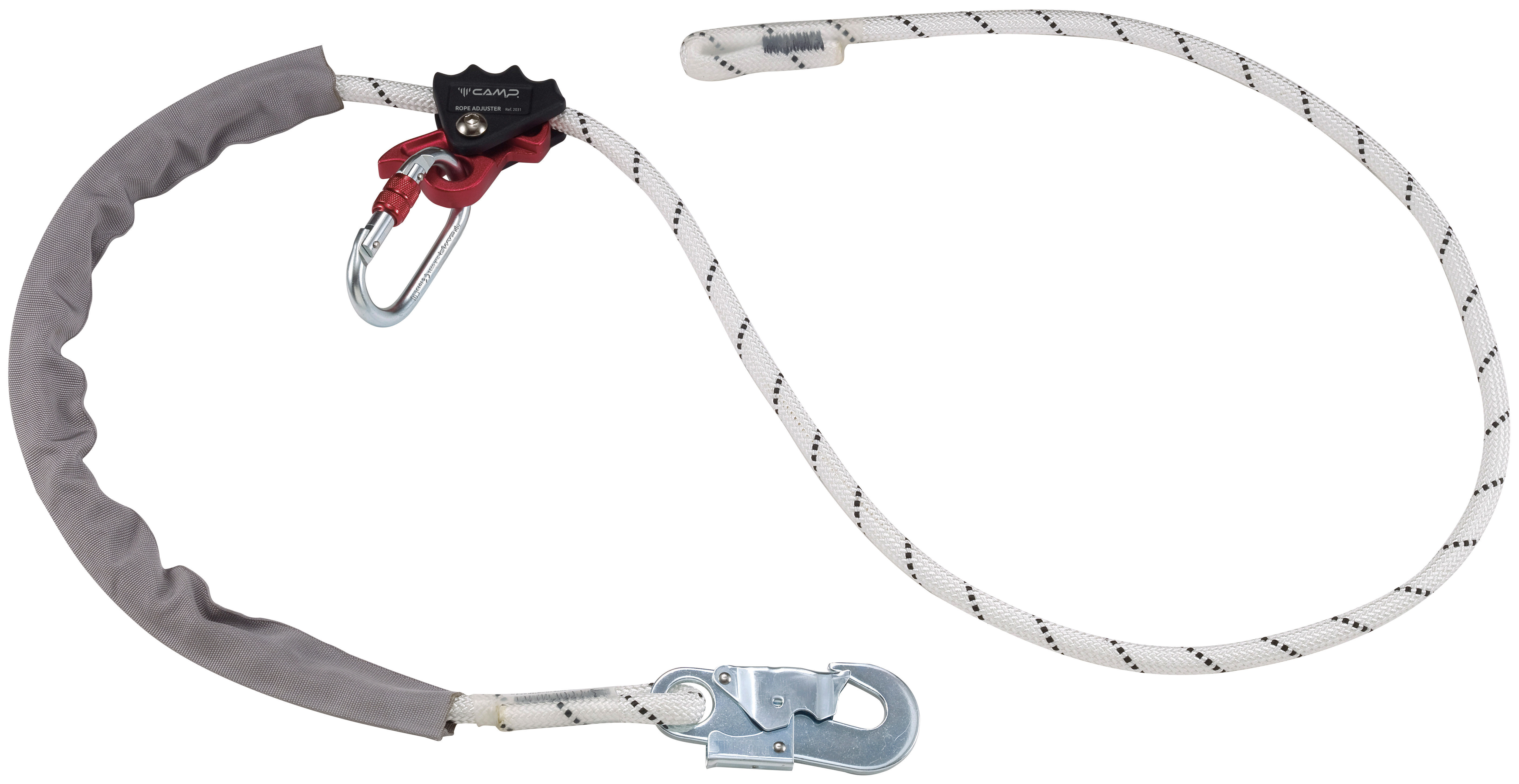 Positioning lanyards constructed from 12.5 mm polyamide static rope. Ergonomic squeeze-activated aluminum alloy adjustment device. Available in a large variety of lengths and configurations to meet the varied needs of workers at height.