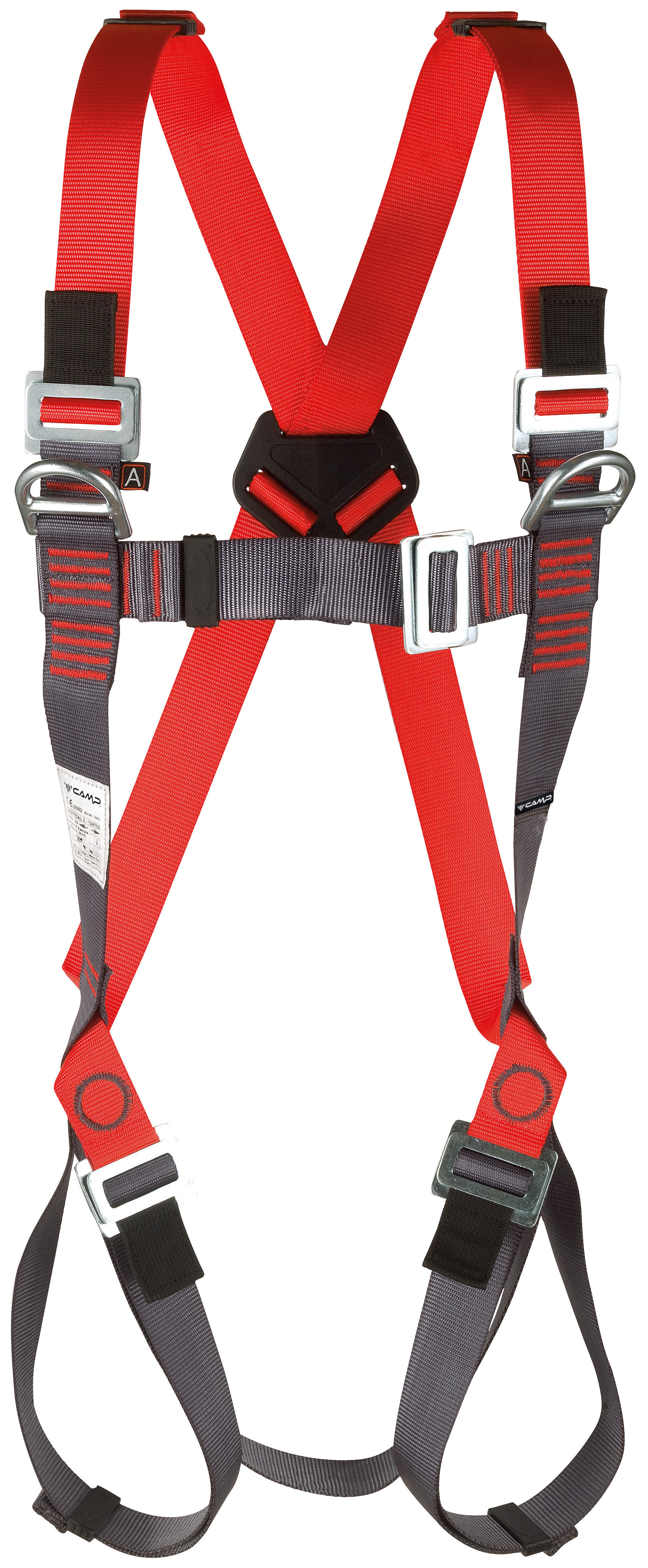 A basic full body harness with 3 attachment points for fall arrest: 2 front, 1 dorsal.