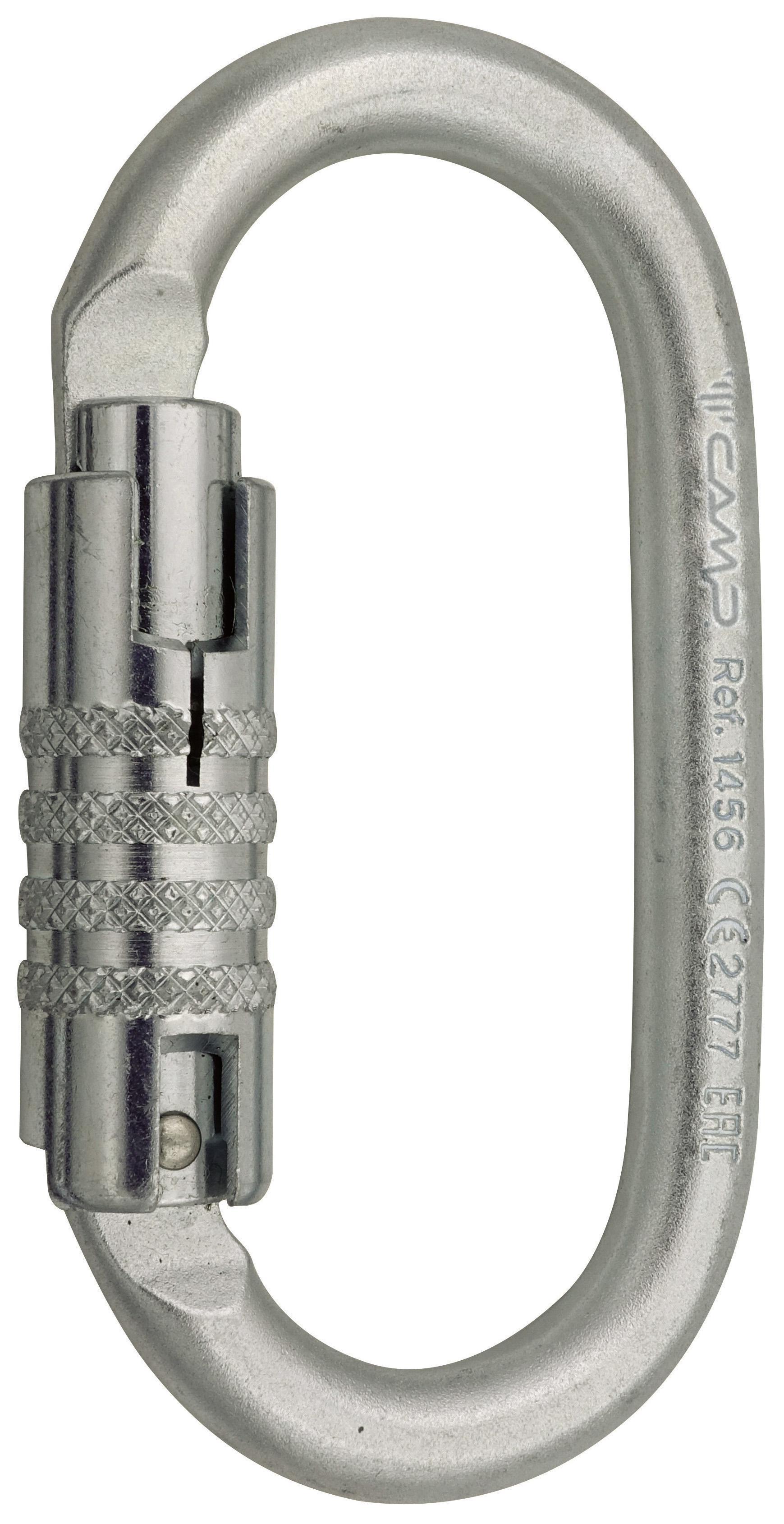 High strength steel carabiner. The oval shape is ideal for use with pulleys, descenders and ascenders.
